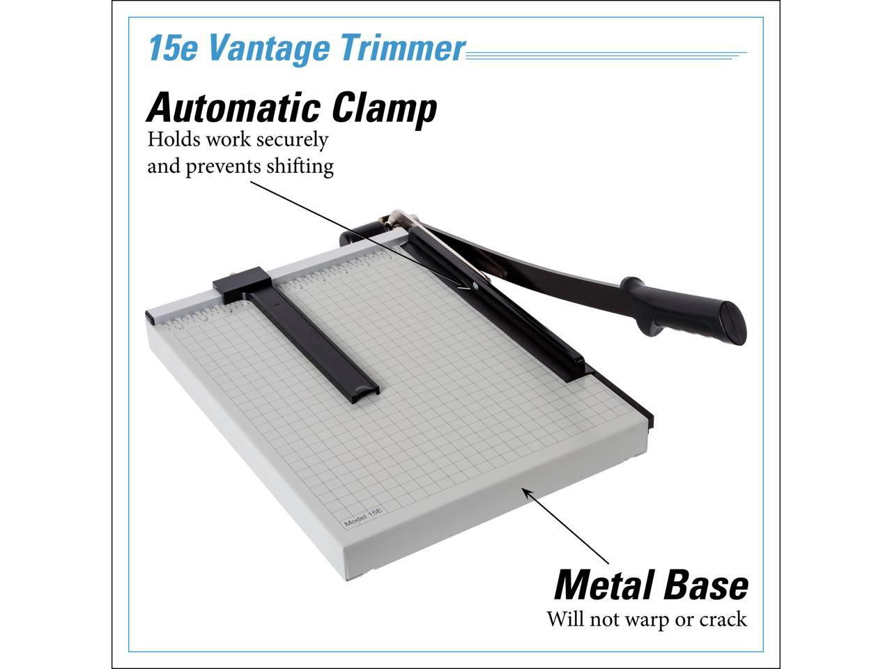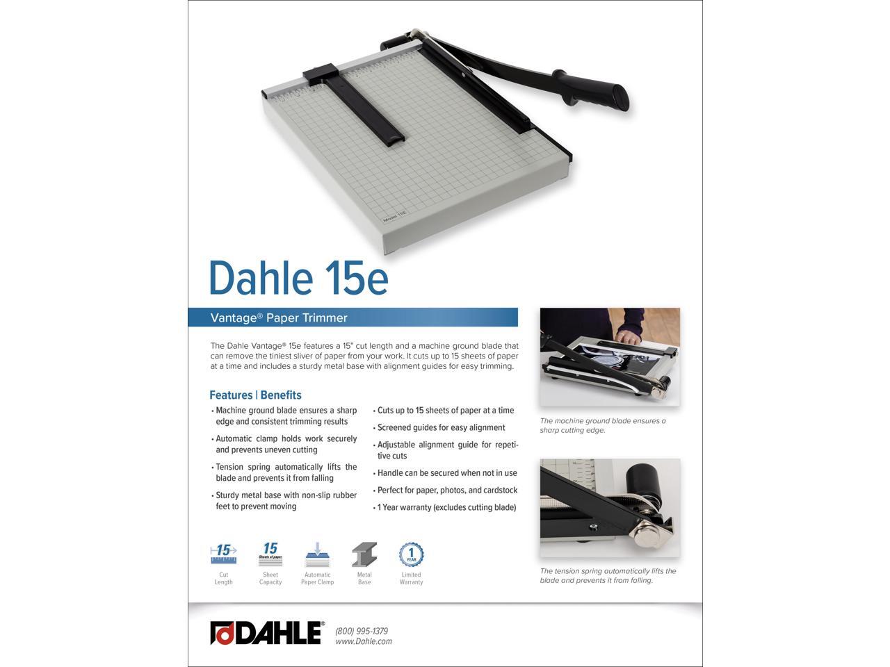 Dahle Vantage 15e Paper Trimmer, 15" Cut Length, 15 Sheet, Automatic Clamp, Adjustable Guide, Metal Base with 1/2" Gridlines, Guillotine Paper Cutter