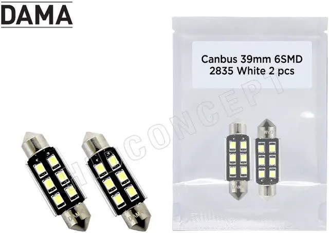 Introducing the latest LED product from DAMA Automotive Lighting. DAMA Mini 39mm festoon LED bulbs are bright, and I meant B.R.I.G.H.T. Compare to the brands like Philips or Osram festoon LED bulbs, DAMA Mini 39mm LED bulbs are 100% brighter and super crisp. DAMA Mini 39mm LED bulbs are engineered to its optimal performance and long-lasting and unlike other LED bulbs in the market, DAMA Mini Festoon LED bulbs have built-in CANBUS which ensures error canceling function. With 360 degrees of LED chips embedded on a light yet sturdy aluminum body, DAMA Mini Festoon LED bulbs are the "must-have" to spiff up your vehicle.