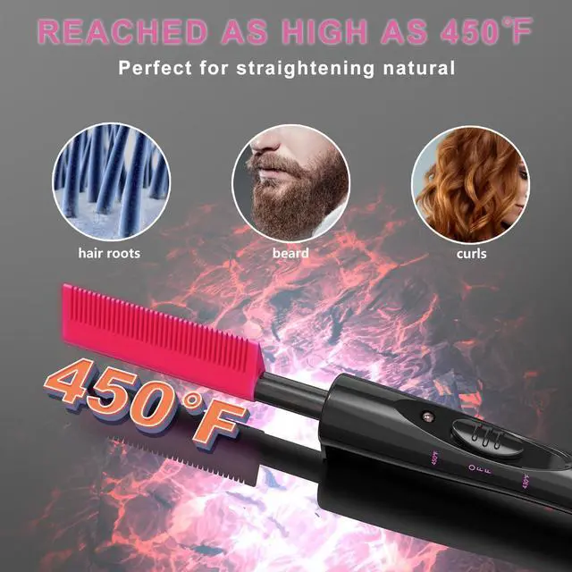 Fast HeatingPTC technology evenly distributes heat so that the straightener comb maintains the optimum heat level within 30 seconds, 10~15 times faster than a traditional electric hot comb! Straighten your hair/wig/hair roots in minutes. The effect is long-lasting.specially designed for you in a hurry, you don't need to waste time waiting for styling.