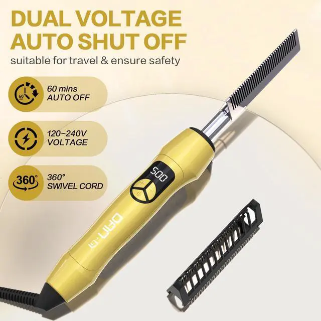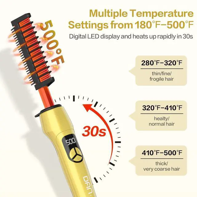 Customizable Heat Settings: The hair straightener comb features a wide range of temperatures (180-500) to achieve your desired hairstyle, from sleek straightening to gentle root touch-ups.