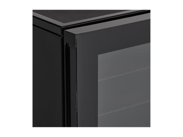 - Elegant all black wine cooler with high gloss door frame and smoked glass