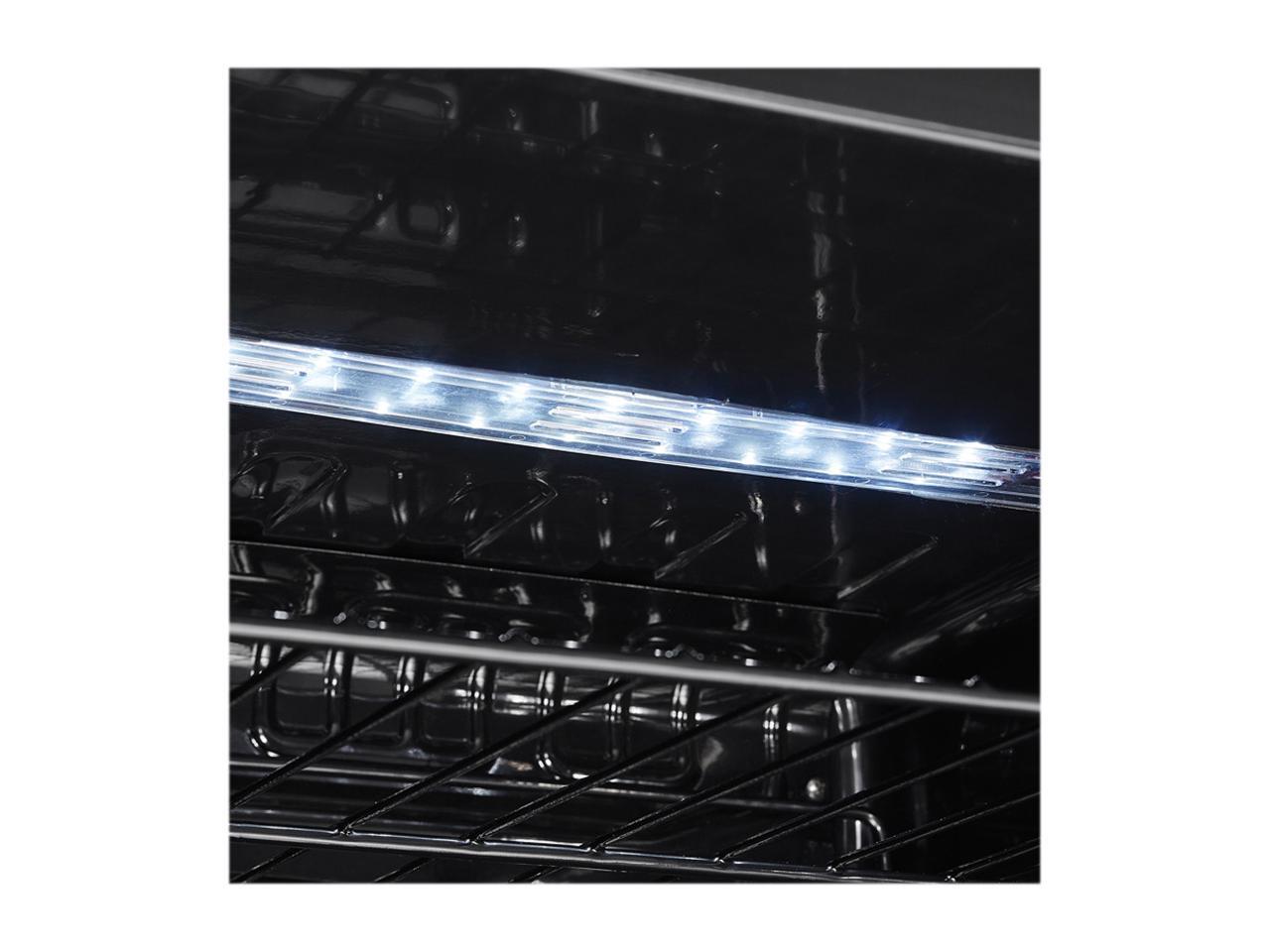 - Showcase Lighting illuminates the cabinet with Energy efficient blue LEDs