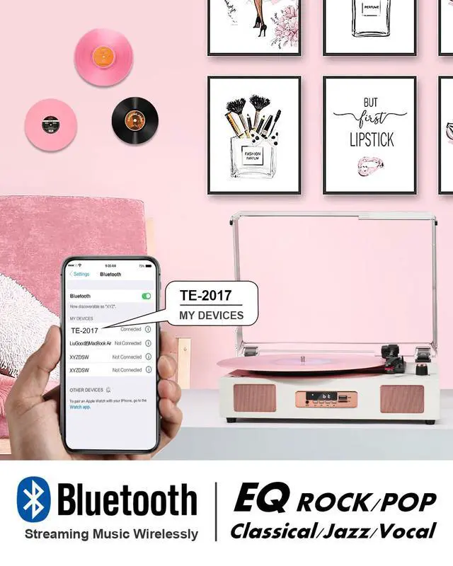 Stream wireless music from your smartphone to the the turntable's stereo speakers.(No Bluetooth Transmitter)
