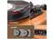 All-in-one turntable has belt-drive system, built-in anti-vibration technology, and two full-range stereo speakers for an upgraded listening experience.