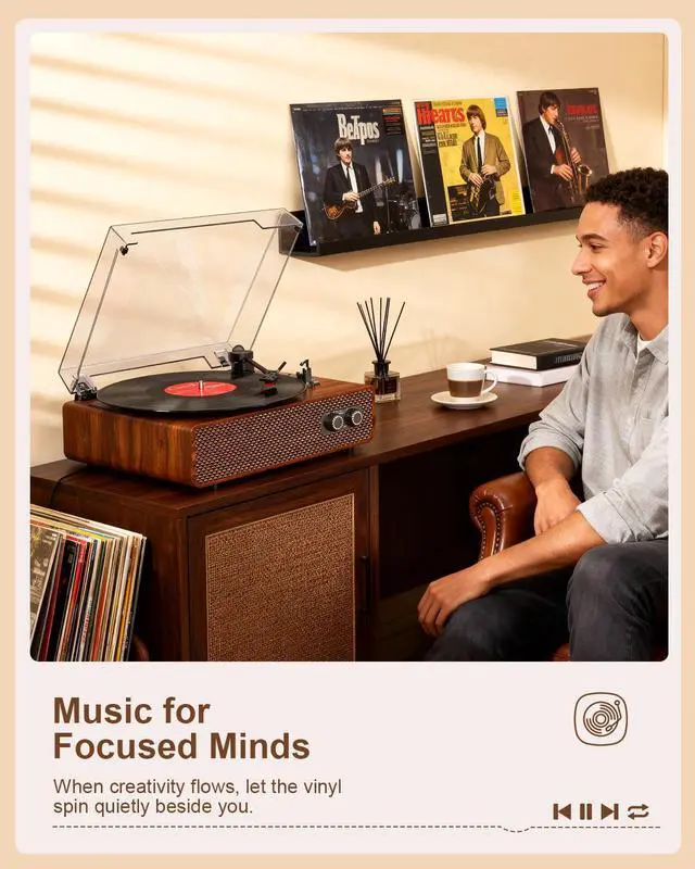 Inspired by classic record players, it brings warmth, weight, and character into everyday spaces.