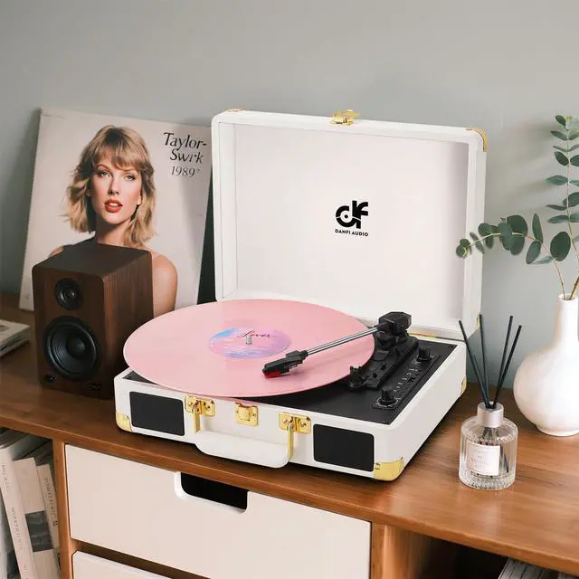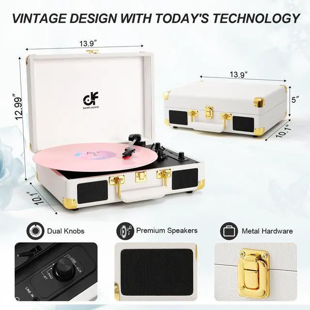![]() White &Gold Record Player | ![]() Teal&Silver Record Player | ![]() Black&Rose Gold Turntable | ![]() Blue&Broze Record Player |