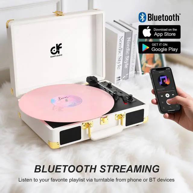 Streaming digital music to turntable from your smartphone via it's built-in Bluetooth Speakers