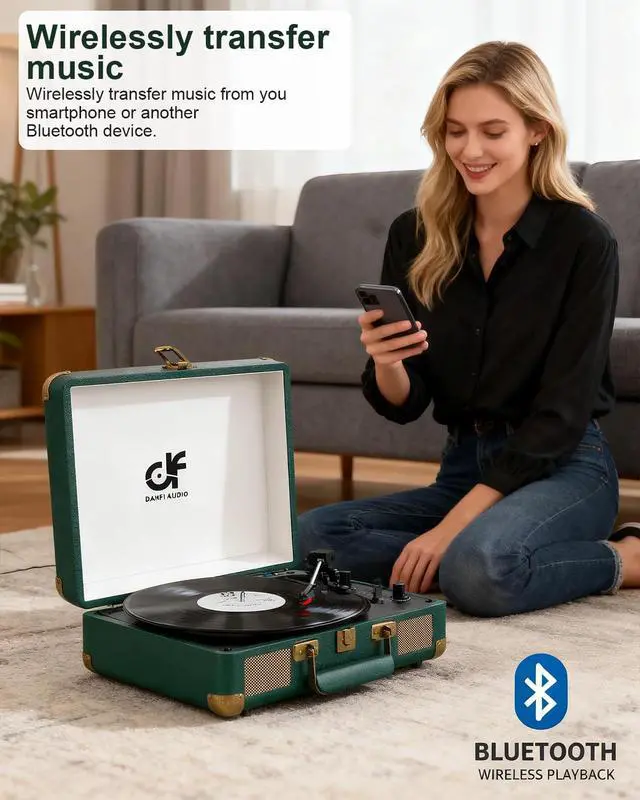 The 3-speed turntable (33/45/78 RPM) preserves authentic playback rituals