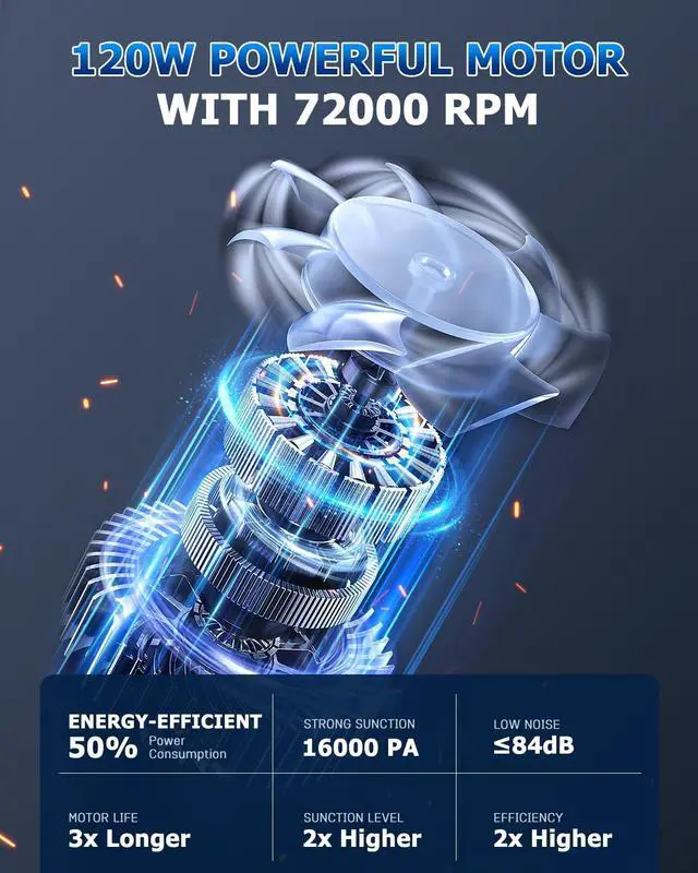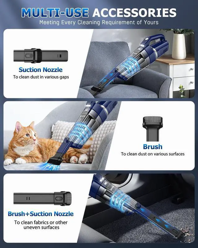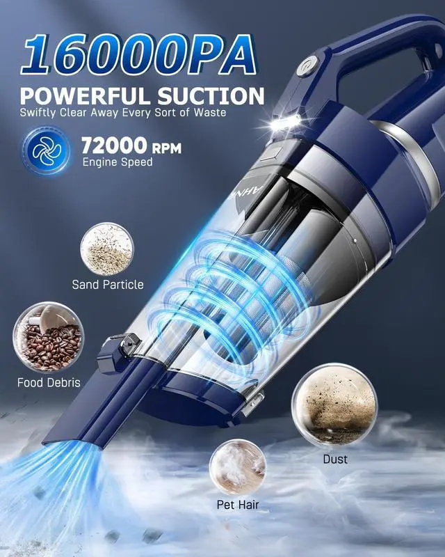 | Special Feature | 16000PA Strong Suction, Cordless & Portable, Dual Filtration System, LED Light |