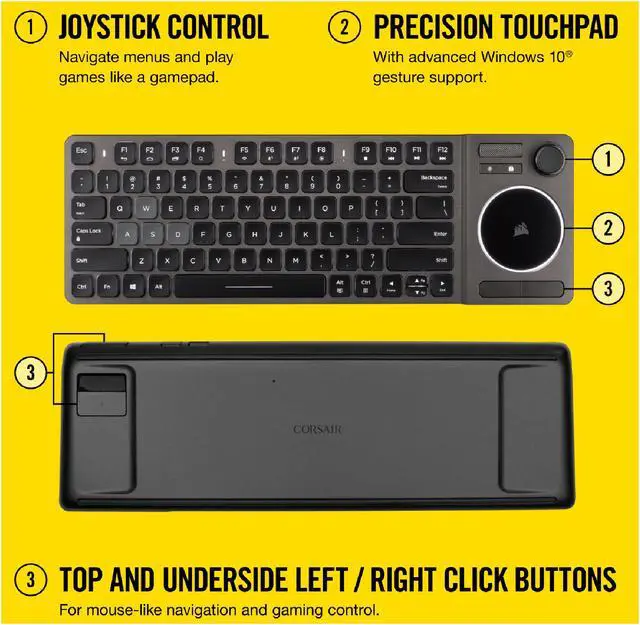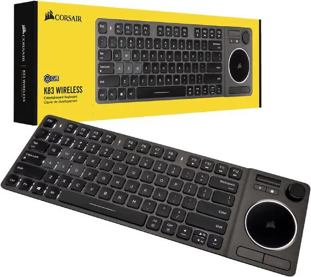 THE WIRELESS K83TOTAL ENTERTAINMENT CONTROL REFINED STYLE.VISUALLY BRILLIANT. Sleek and durable brushed aluminum design with adjustable white LED backlighting suits your modern living room. MODERN CONTROL JOYSTICK Intuitive joystick control with click buttons plays games like a gamepad and makes menu browsing a breeze. TOUCHPAD Integrated precision touchpad features tunable settings with advanced Microsoft Windows 10 four-finger gesture support. MEDIA Dedicated aluminum volume roller with press-to-mute smoothly fine-tunes your audio CONNECTIVITY FLEXIBILITY Connect to your living room PC, compatible smart TV, NVIDIA SHIELD, streaming media player, or other devices with a choice of ultra-fast 2.4GHz wireless or low-lat...Keyswitch Technology: ScissorsKeyboard/Keypad Connectivity Technology: WirelessKeyboard/Keypad Wireless Technology: BluetoothNumber of Keys: 77Hot Keys: Volume ControlHot Keys: MutePointing Device Type: JoystickPointing Device Type: TouchPadKeyboard/Keypad Host Interface: USB 3.0 Type AColor: BlackWeight (Approximate): 1.06 lbPackage Contents: K83 Wireless Entertainment Keyboard USB Wireless Receiver USB Charging / Data Cable Warranty Card Quick Start Guide Safety Leaflet Platform Supported: WindowsPlatform Supported: PCDevice Supported: Smart TVDevice Supported: Media PlayerLimited Warranty: 2 YearPackage Contents K83 Wireless Entertainment Keyboard USB Wireless Receiver USB Charging / Data Cable Warranty Card Quick Start Guide Safety Leaflet
