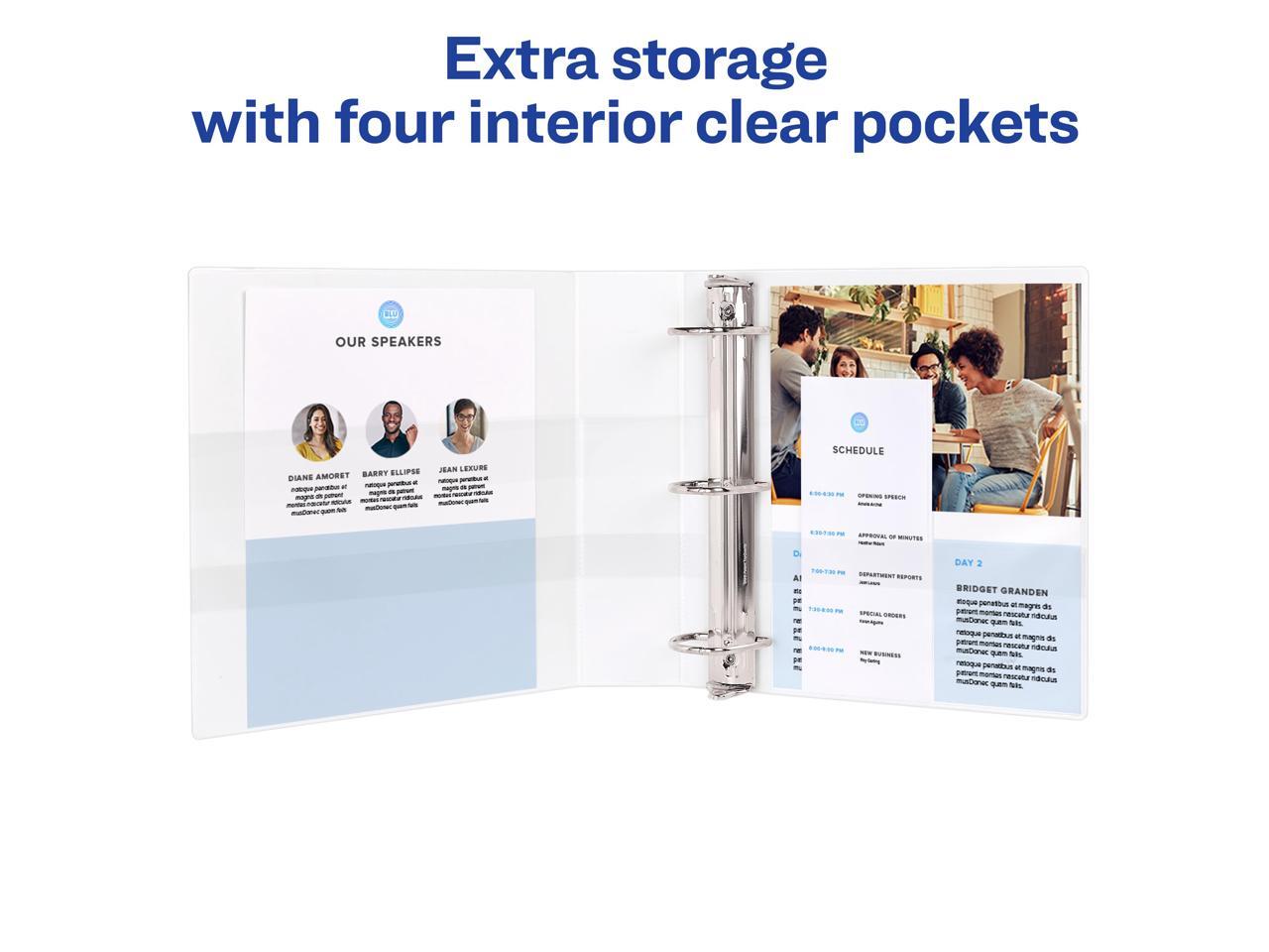 - Avery Chartreuse 3 Ring Binders are perfect for organization as school binders, recipe binders, receipt binders and more. Store extra notes and documents with four interior pockets made with a non-stick material that keeps your print safe and smudge-free.