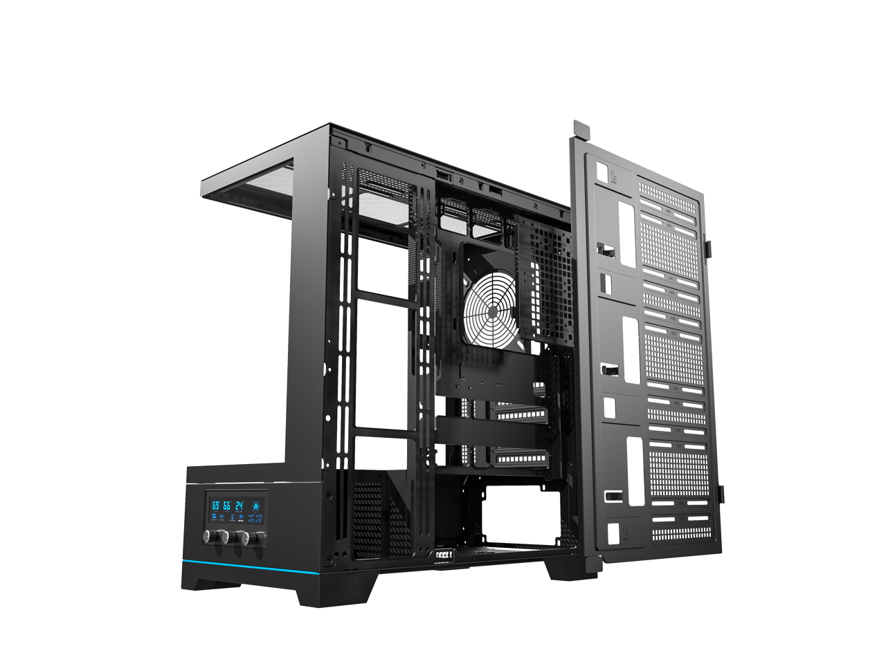 - Four-level cooling system with adjustable fan speed and real-time temperature display.