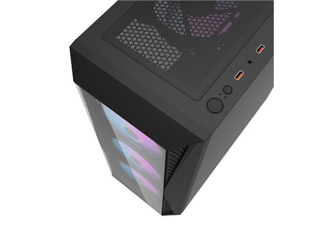 - Tempered glass side panel connected with thumbscrews