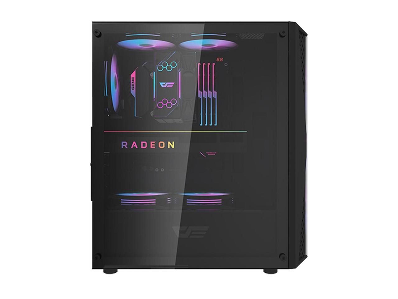 darkFlash DK352 Plus, ATX PC Case, Full Transparent Glass Front Panel, Tempered Glass Side Panel, Supports 360mm Water Cooling, USB 3.0 Ports,Black