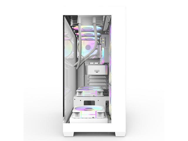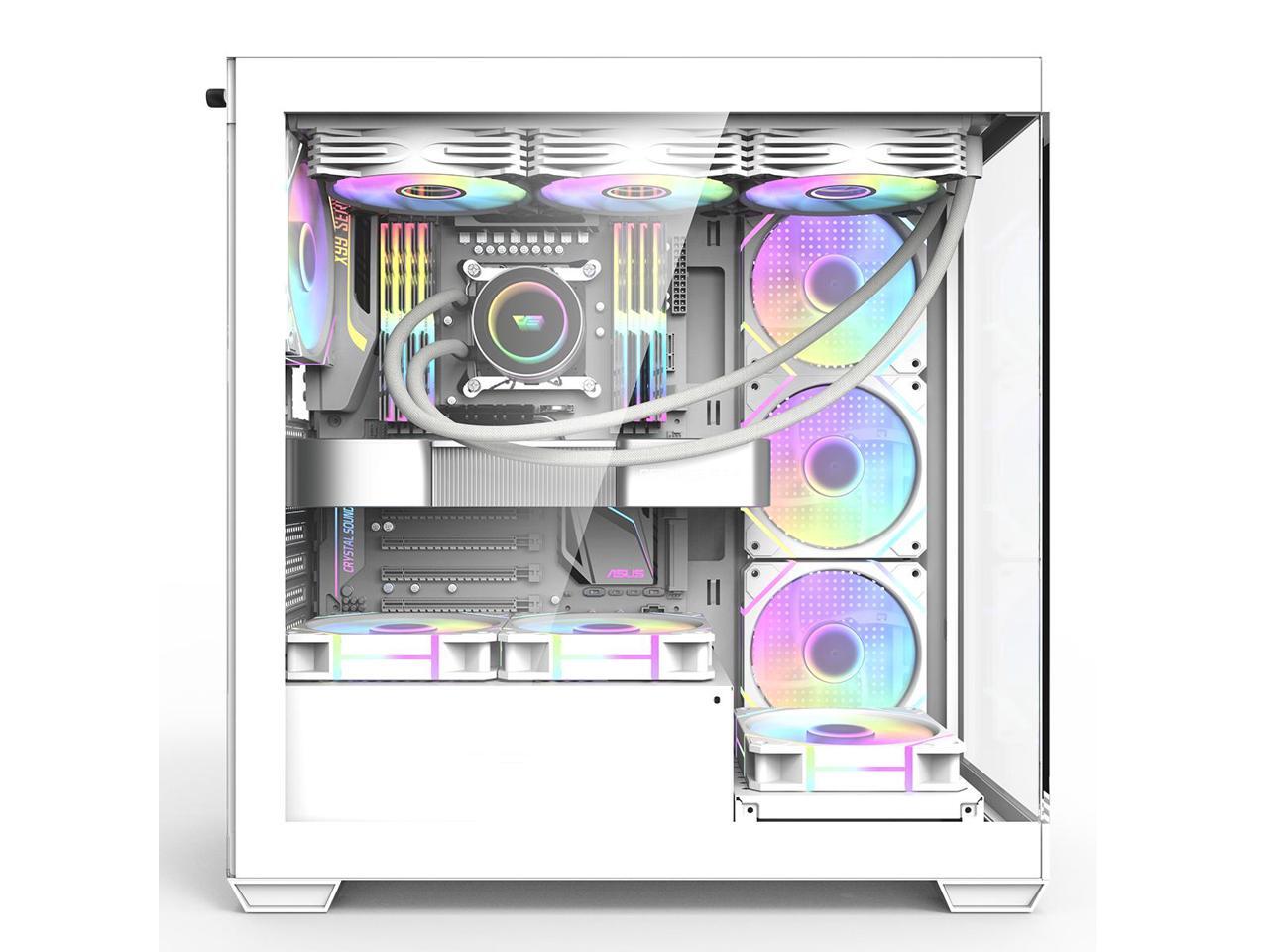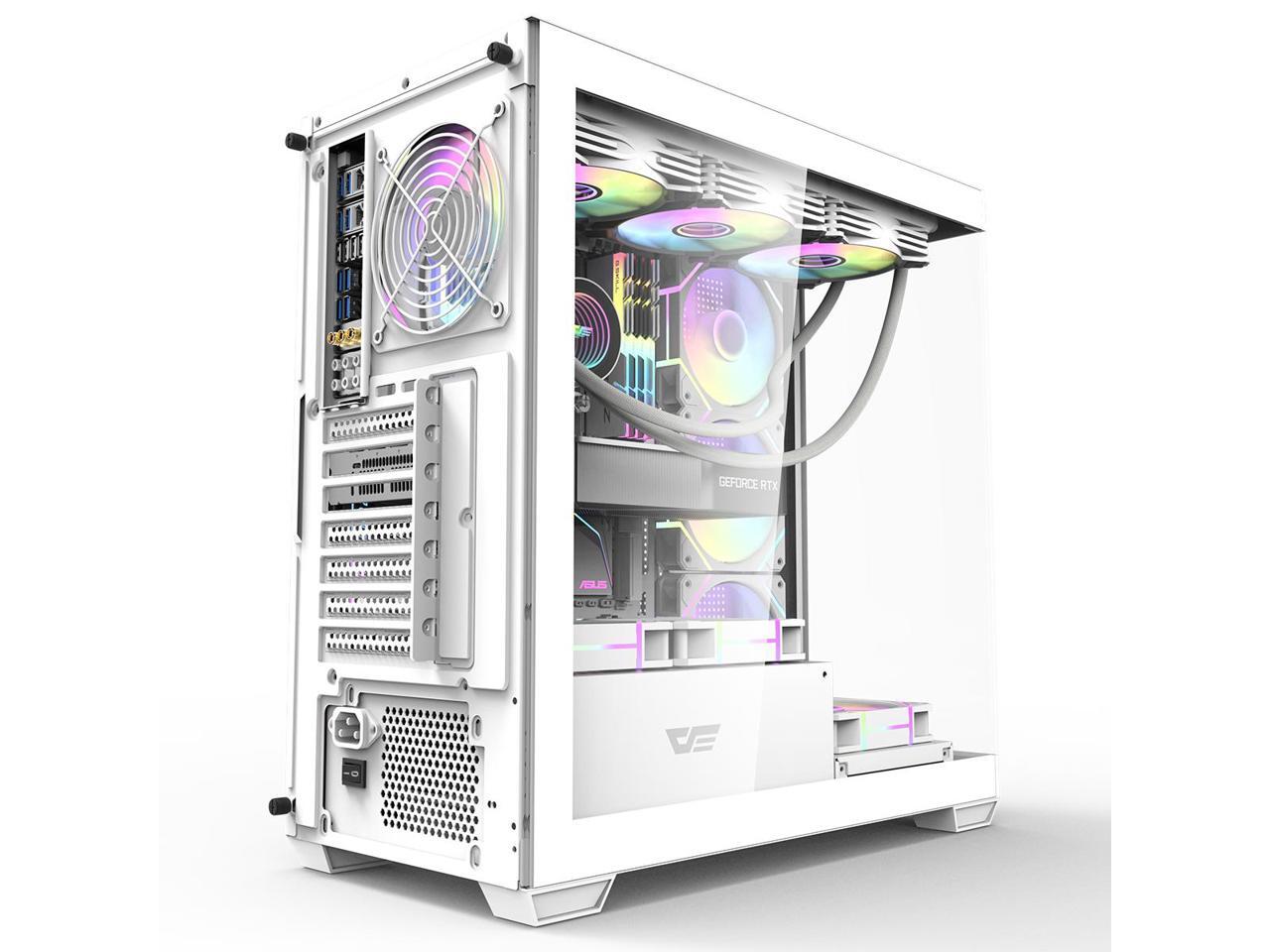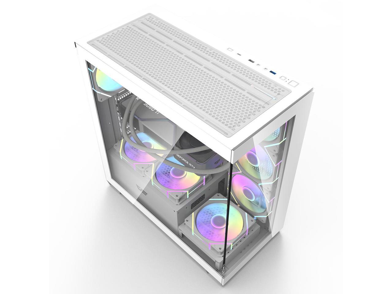 darkFlash DS900, ATX Mid-Tower Gaming PC Case, 4x PWM ARGB Fans Pre-Installed, Dual Tempered Glass, Mesh Front Panel, Type-C Port, Supports 360mm Liquid Cooling,White