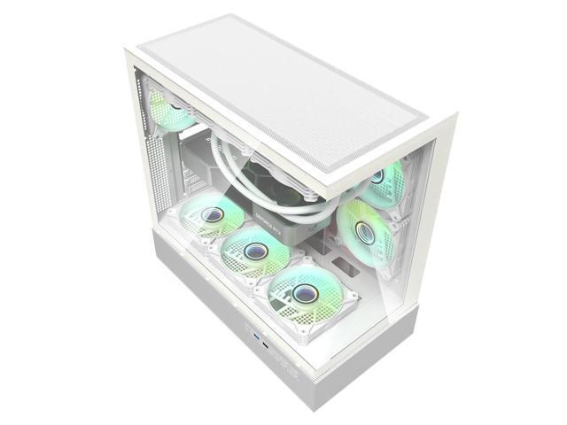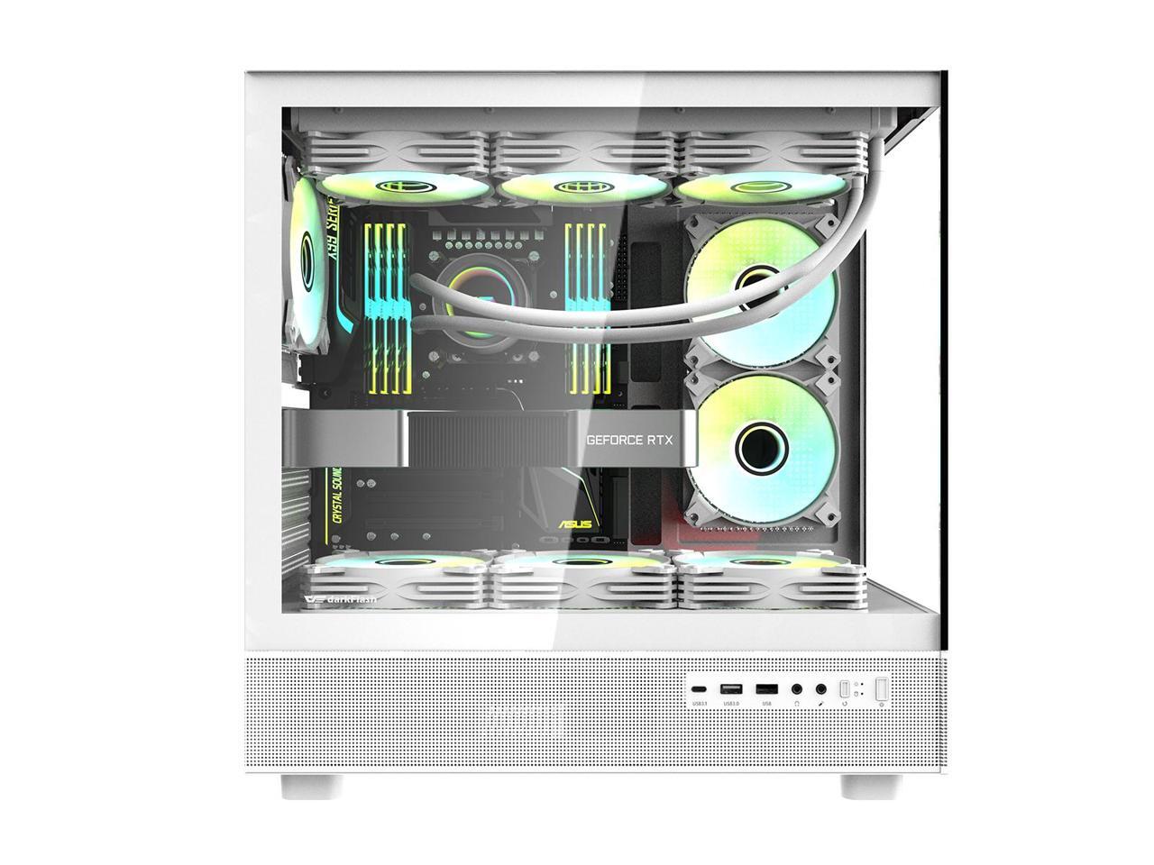 darkFlash DPX90, ATX Mid-Tower Gaming PC Case, 3x Pre-Installed Fans, 270° Panoramic Tempered Glass, USB 3.1 Gen 2 Type-C Port, Supports 360mm Radiator,White