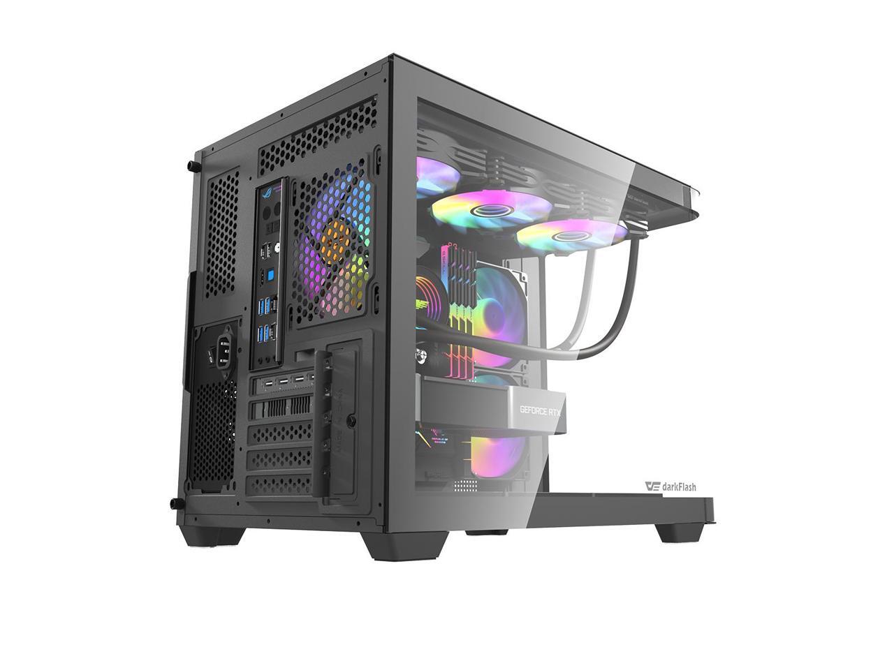 darkFlash DPW90M,Micro-ATX PC Gaming Case,3×Pre-Installed ARGB PWM Fans,Panoramic Dual Curved Tempered Glass,Removable Mesh Front,USB 3.0,Supports 360mm Front Radiator,RTX 50 Series Compatible, Black