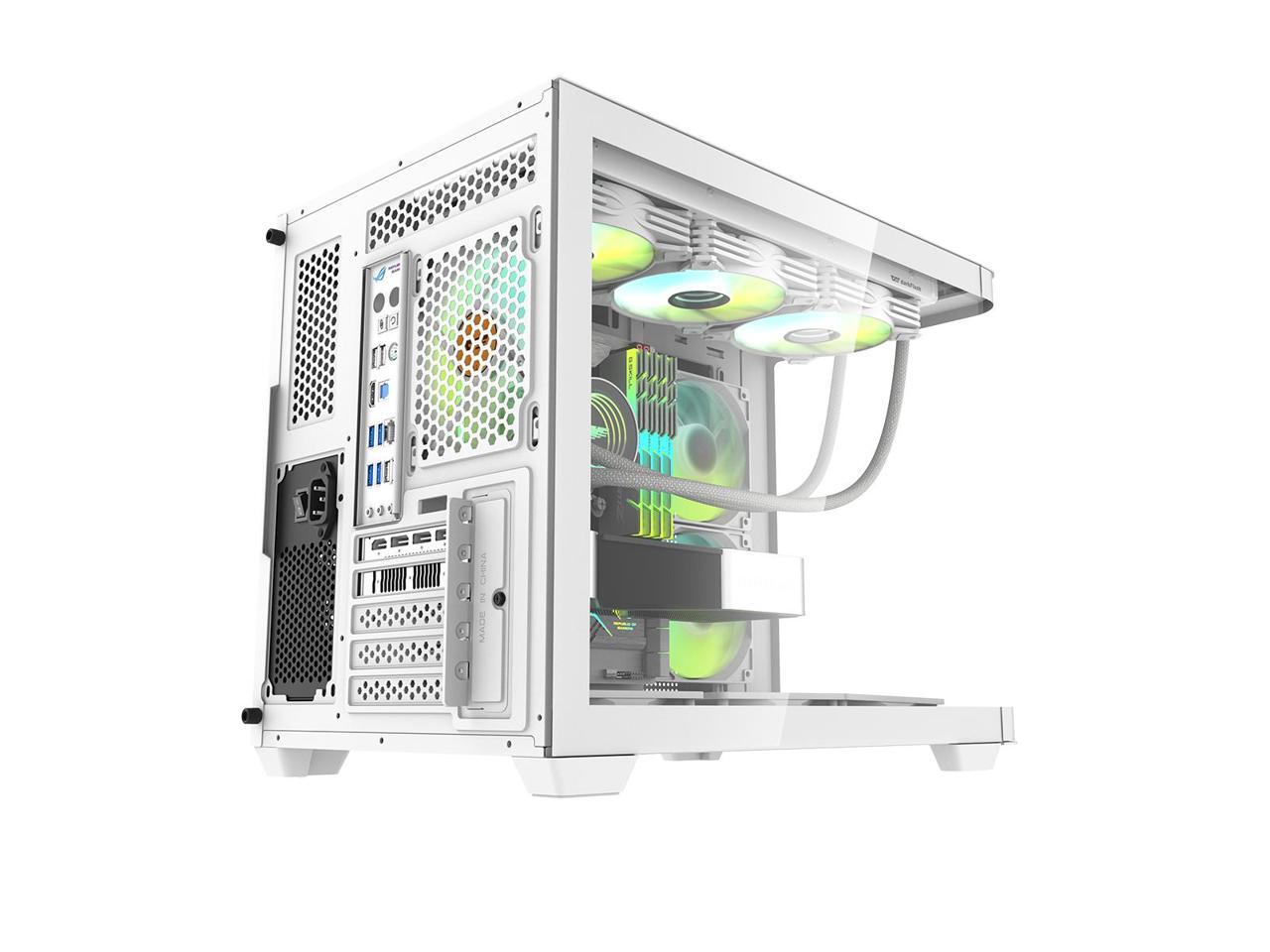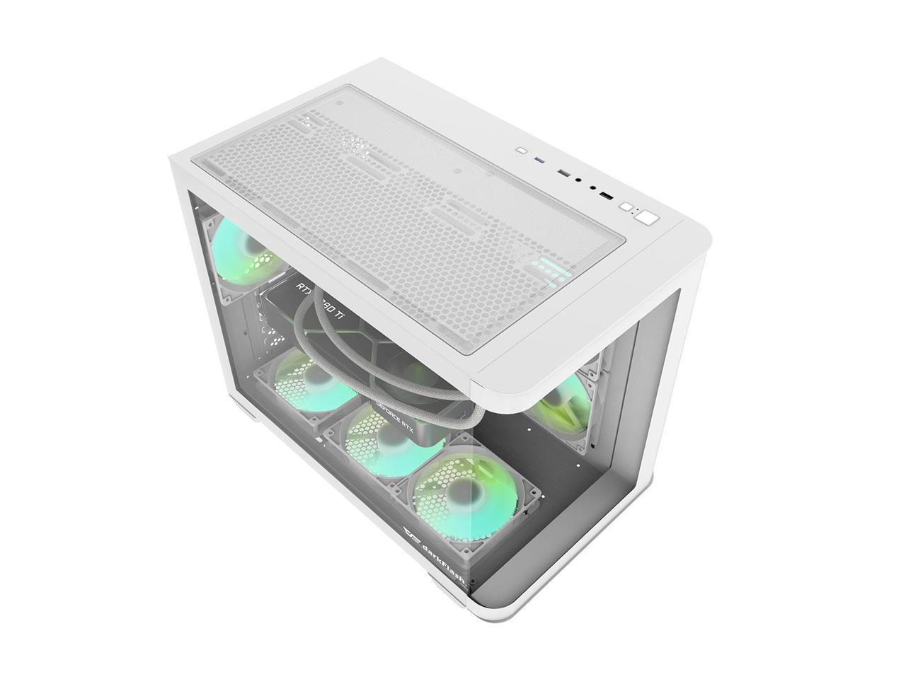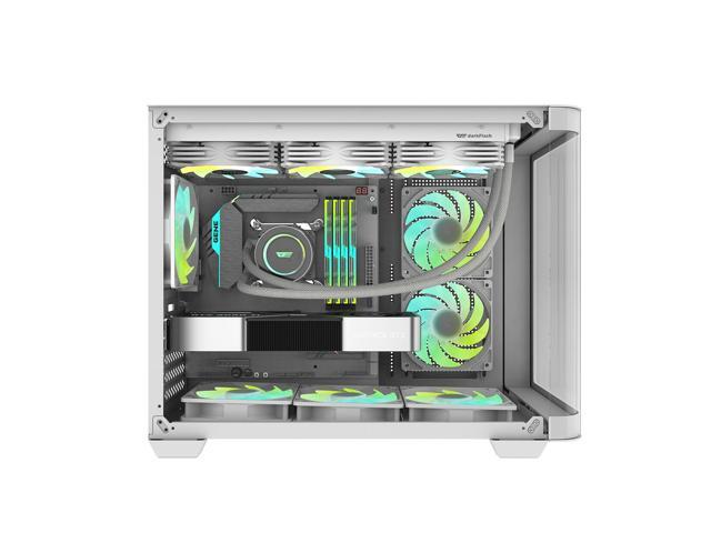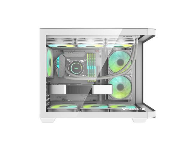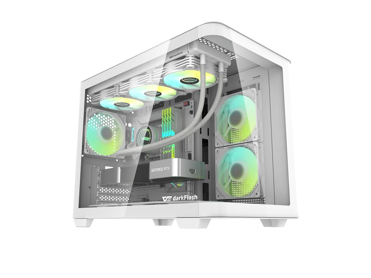 darkFlash DPW90M,Micro-ATX PC Gaming Case,3×Pre-Installed ARGB PWM Fans,Panoramic Dual Curved Tempered Glass,Removable Mesh Front,USB 3.0,Supports 360mm Front Radiator,RTX 50 Series Compatible, White