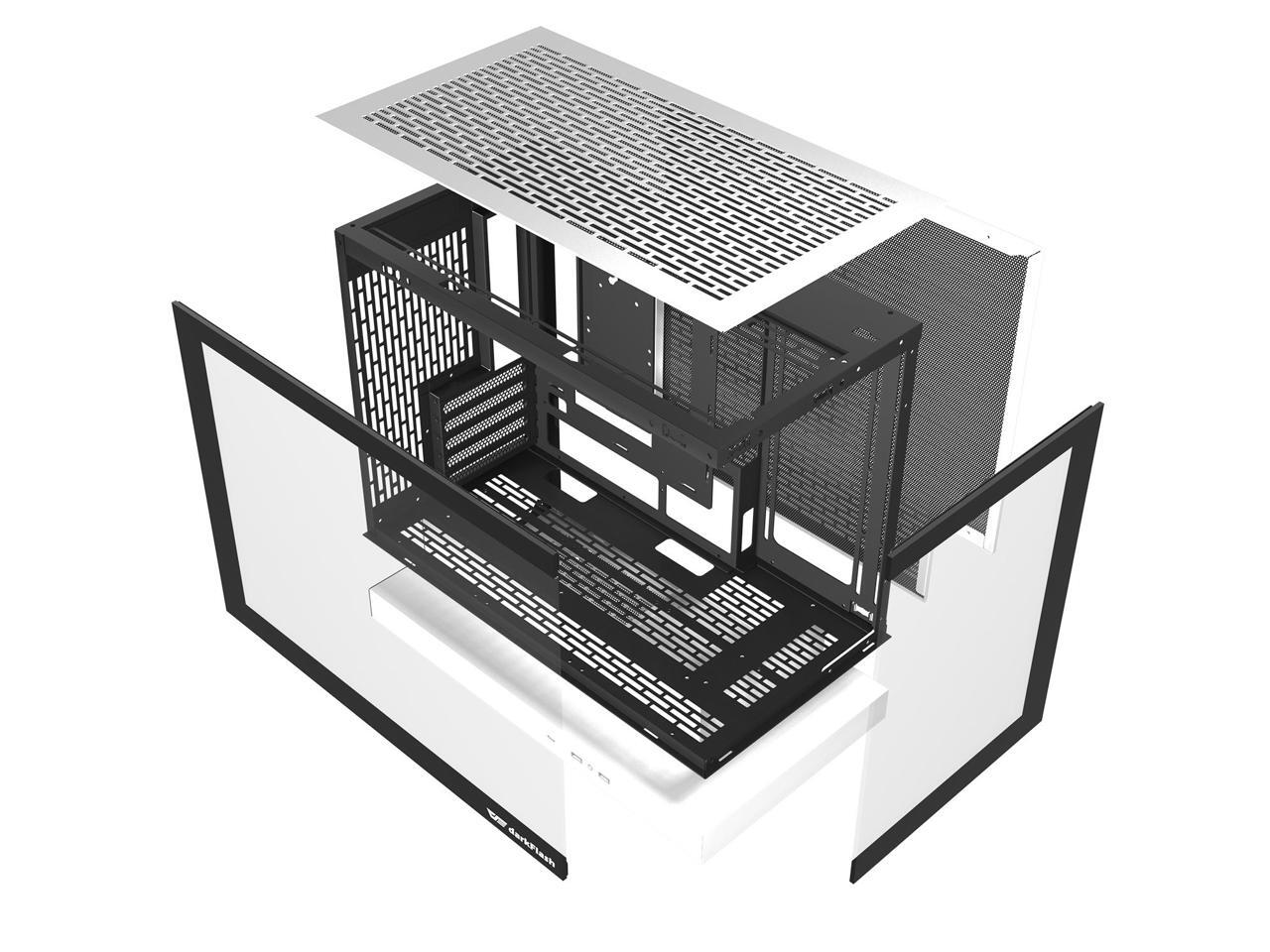 darkFlash FLOATRON F1, M-ATX Mid-Tower Gaming Case, Floating-Base High-Airflow Mesh Front, Tempered Glass Side Panel, USB-C, Supports 360mm Radiator & 425mm GPU, White