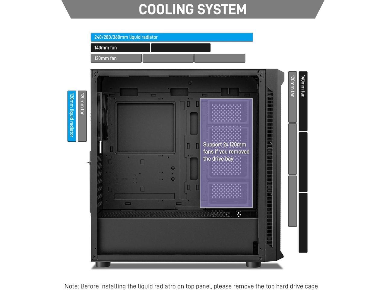 - Supports 360 mm Radiator: Supports max. 360 mm radiator in top to efficiently dissipate heat, keeping system cool and quiet
