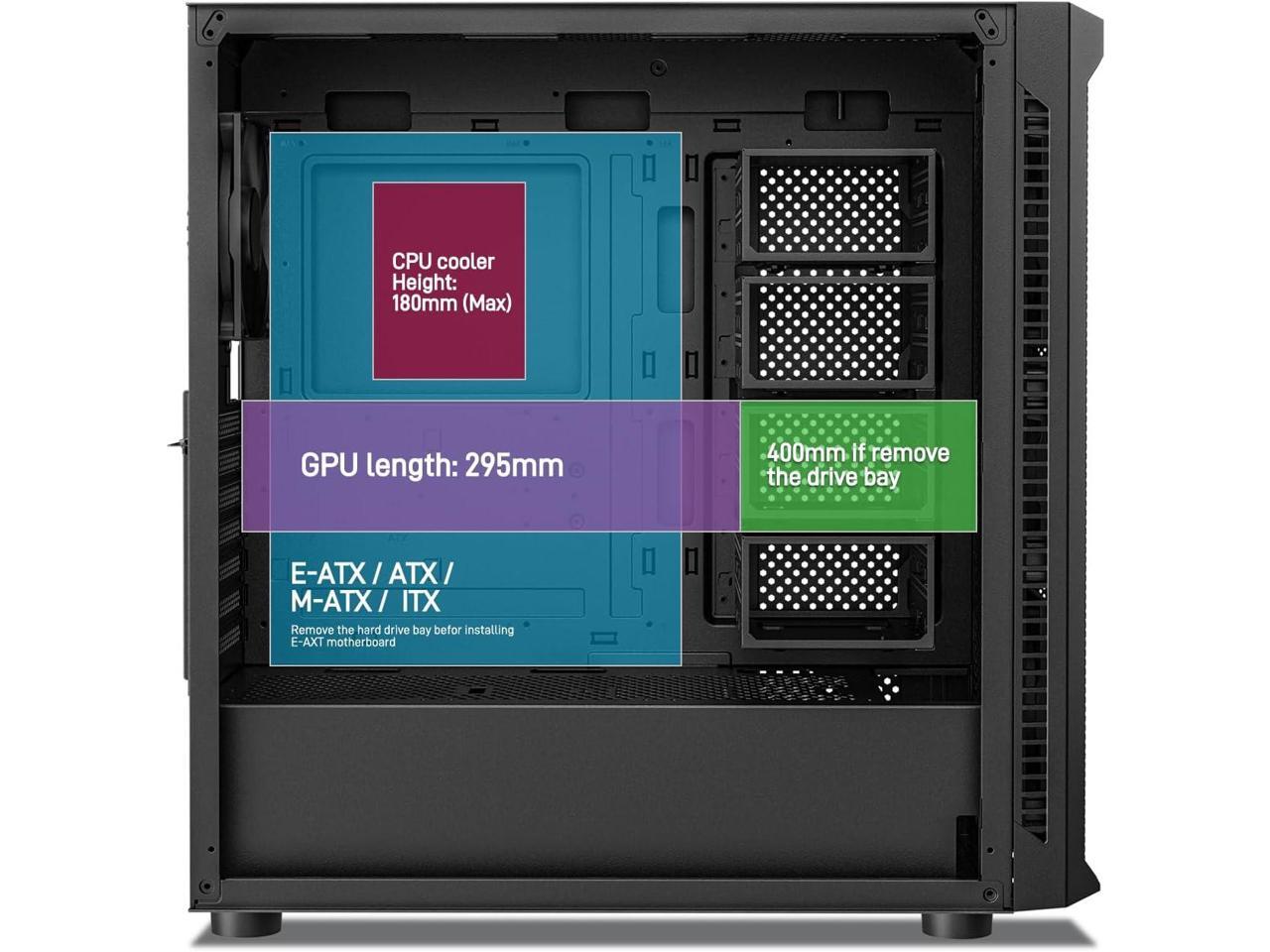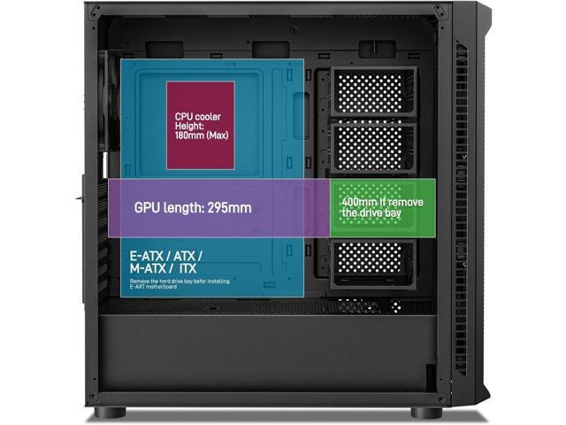 - E-ATX Motherboard Supported: E-ATX/ ATX/ M-ATX/ ITX motherboard supported (hard drive cages need to be removed to install E-ATX)