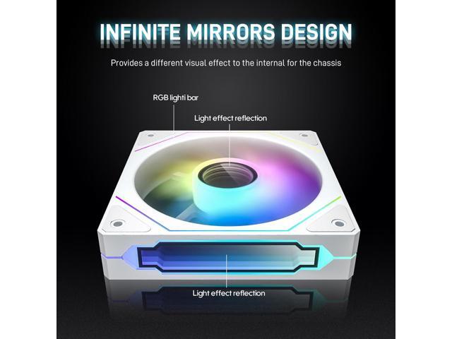 - ARGB Infinity Design: Infinity Mirror Design case fans provide Infinity visualization of the center and sides of the fan, allowing you to experience stunning multi-layered effects