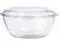 TamperAlert hinge protrudes outward when torn, alerting the customer that the container has been opened. Hinge remains attached to the container, meaning no loose plastic pieces and therefore no littering. MicroTrim edge contributes to tamper-resistance by inhibiting the ability to lift up the lid from the base without tearing the hinge. 360 degree leak-resistant perimeter seal completely seals entire tray for maximum freshness and to prevent leaks. Recessed stacking platform provides greater stability of merchandising displays. Offset opening tabs and lift and hold embossing makes SafeSeal bowls easier to open. Crystal clear container with minimal sidewall ribbing. Food Container Type: Base/Lid Combo; Material(s): Plastic; Food Container Material Type: Plastic; Capacity (Volume): 64 oz.