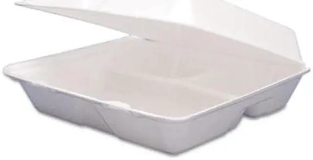 Insulated to accommodate both hot and cold foods. Non-absorbent. Stackable. Food Container Type: Hinged Lid Container; Material(s): Extruded Polystyrene; Material Type: Foam; Color(s): White.