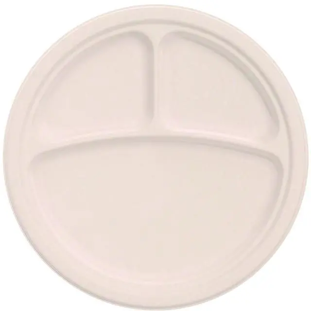 Compostable Molded Fiber Dinnerware ProPlanet Seal 3-Compartment Plate 10.2" dia Natural 500/Carton 10FBRP3