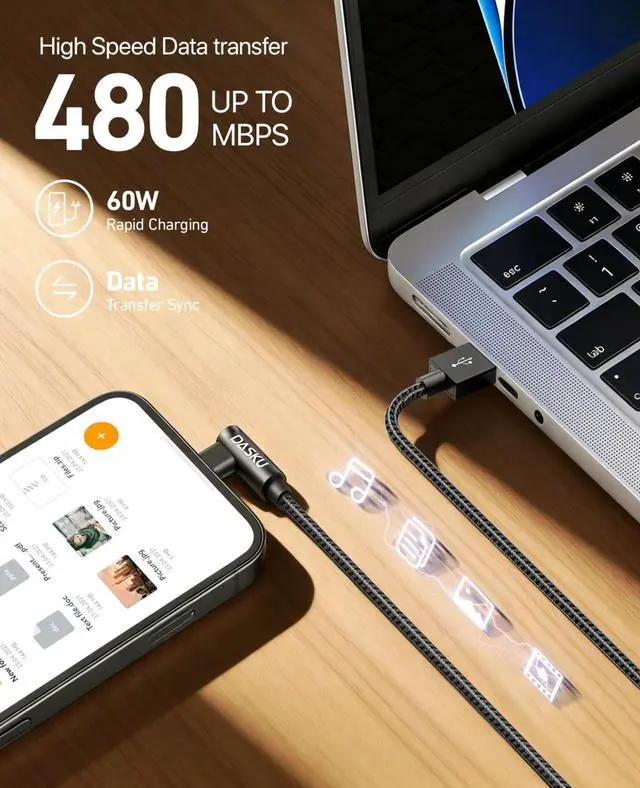 90 Degree USB C CableUSB C charging cable with special right angle design not only give you great convenience of playing games, increase winning probability, but also easier to watching movies or videos when charging power. What's more, you don't have to worry about usb a to usb c cable joints bending and fraying, which prolongs its service life.