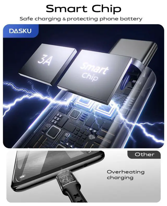 USB-C Cable with Safety-Certified Smart Chip: This USB to USB C cable features a high-quality smart control chip that has passed multiple international safety tests and certifications. The USB A to USB C charging cable intelligently identifies connected devices and automatically adjusts to the optimal charging current, effectively preventing overcharging, overvoltage, short circuits, and overheating. This not only ensures lightning-fast charging speeds but, more importantly, provides vault-like security for your valuable smartphones, tablets, and other devices. Enjoy peace of mind for you and your family, free from safety concerns.