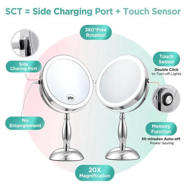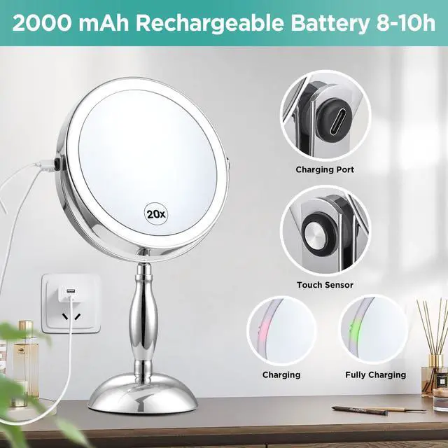 | Special Feature | USB Side Charging+ Side Touch, Rechargeable Battery, 20X Magnifying, Adjustable Lighted, 360 Degree, 2-Sided |