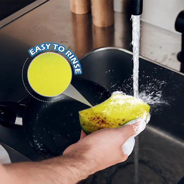 High density sponge is prone to foaming and only requires a small amount of detergent, making it easy to clean your plates, pots, pans, sinks, and stoves. It is suitable for wiping lightly greasy tableware and strong cleaning makes your household chores easier.