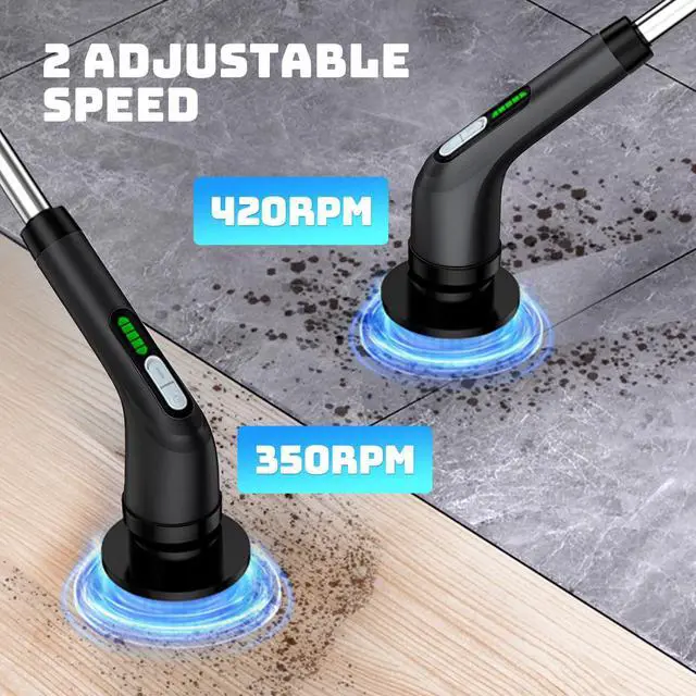 2 Adjustable Speeds for Multi-Surfaces: 330/420RPM 2-speed control: Low speed for gentle cleaning of daily dust on hardwood floors/glass (surface protection); High speed powerfully removes tough stains and grease on tile, bathtub and kitchen surfaces. Effective cleaning with full surface protection.