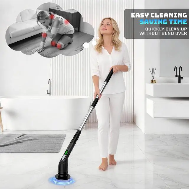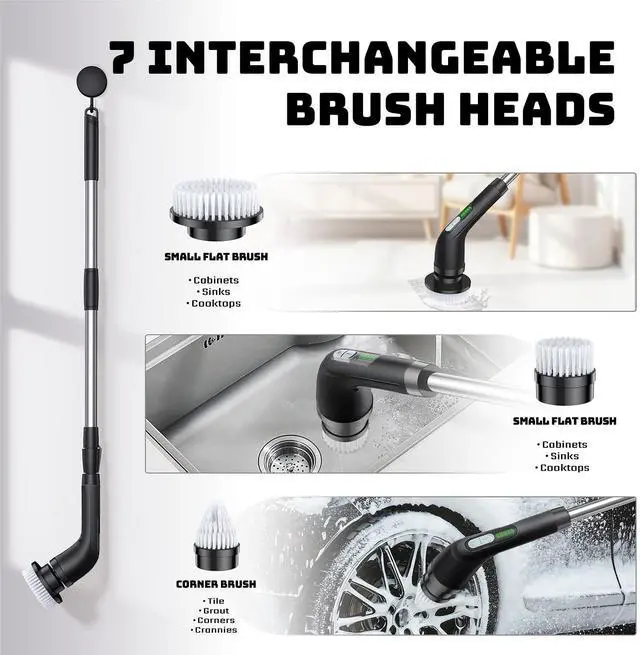 7 Reusable Brush Heads for All Scenarios: 7 durable reusable brush heads precisely fit tile, bathtub, toilet, glass, hardwood floors and kitchen grout. All-in-one cleaning brush meets all your whole-house cleaning needs for long-term use.