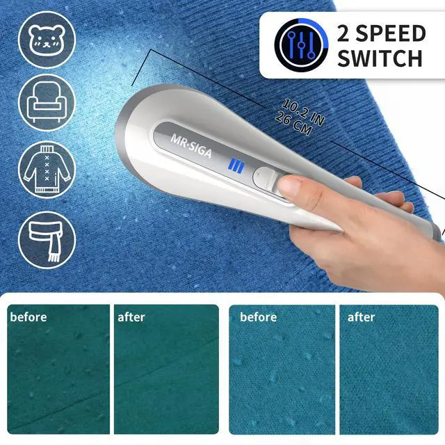 MR.SIGA Rechargeable 2 Speeds Fabric Shaver with Led Lights