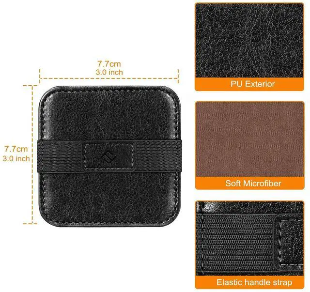 This pack of handy cleaning pads is a perfect tool to clean cellphones/ tablets/laptops/computers/ TV screens, camera lenses and much more. Made of high-quality vegan leather backing and soft microfiber cloth which is safe to use on all delicate surfaces. Designed with an elastic strap which enables any hand size to hold the pad conveniently on fingers for easier cleaning. The strap will lay flat when not used for compact storage.