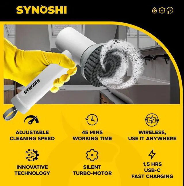 ![]() Cone Brush (2 units) | ![]() Round Brush (2 units) | ![]() Sponge Set (6 units) | ![]() Steel Brush (2 units) | ![]() Synoshi Spin Scrubber |