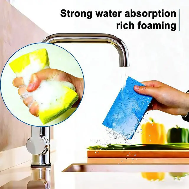 100% BIODEGRADABLE - Use premium quality wood pulp to make these cellulose sponge.No bad odor like other sponges, and you can safely sanitize them in the dishwasher.