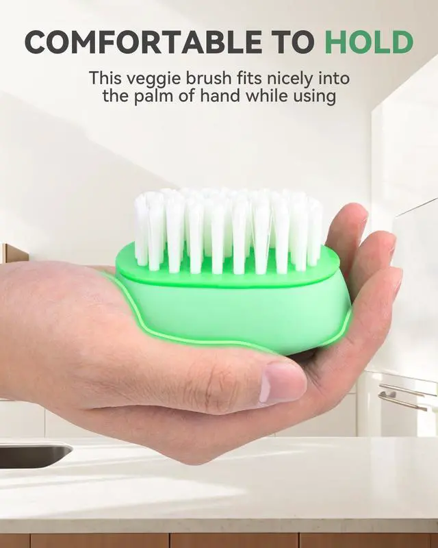 Professional Vegetable Brush Scrubber for FoodThis vegetable scrubber brush effectively removes dirt, wax, and residue from potatoes, carrots, and bumpy-skinned fruits. Rigid yet food-safe PP bristles dig into crevices of ginger roots and mushrooms without damaging delicate produce the ultimate fruit and veggie brush scrubber for your kitchen.