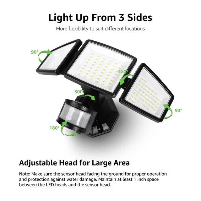 - The LED heads can be easily adjusted to the desired angle, providing wide illumination for larger areas.