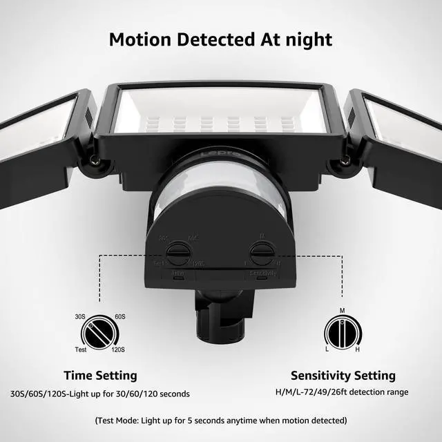 Adjustable Lighting Time - When the security light is triggered by motion, the lighting time can be set at 30s/60s/120s.