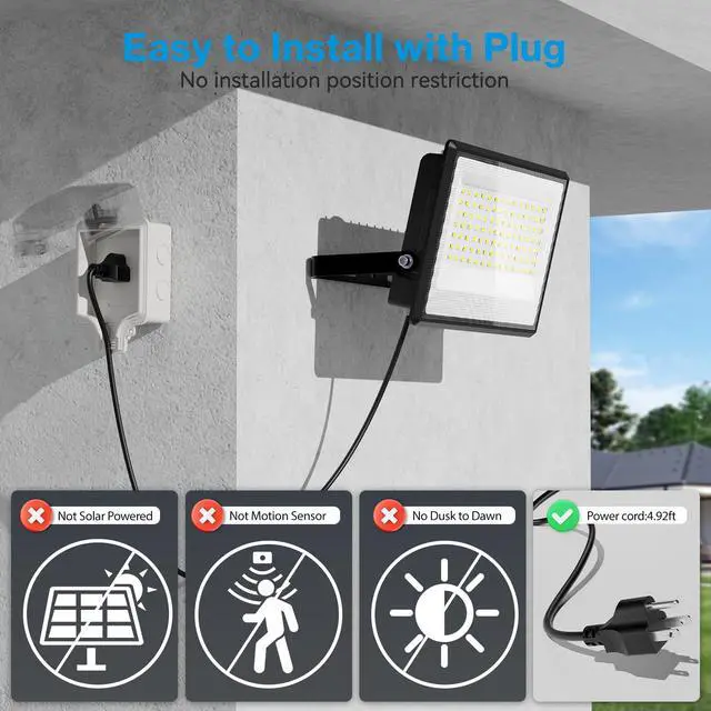 Come with B - US style with ground plug. Safe to use, plug and play! 59.06 inches power cable enough for outdoor and indoor use.