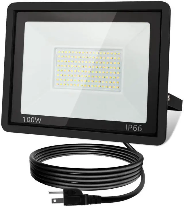100W LED Flood Light Outdoor, 10000LM Super Bright Floodlight Outside Work Lightwith Plug, 6500K Daylight White LED Flood Light Outdoor, IP66 Waterproof Outdoor Flood Light-1Pack