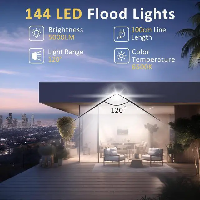 Intensely Illuminating: Boasting 72 high-quality LED lights per floodlight, this setup emits a staggering brightness of 10000LM, bathing your surroundings in a radiant glow akin to daylight with its 6500K white light.