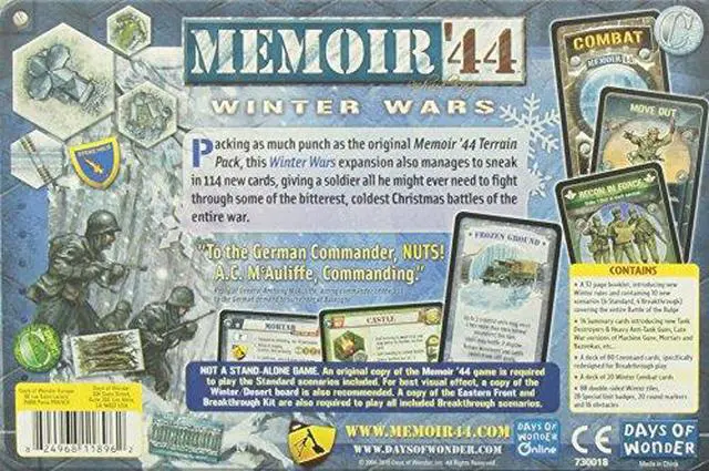 Winter Wars includes: 88 winter terrain tiles; 20 Winter Combat cards and 80
