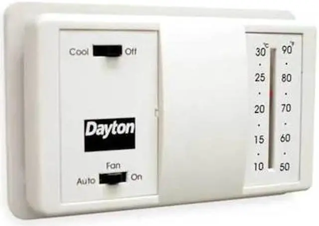 Low Voltage Thermostat, Terminal Designations G, R, Y, System Switching Cool-Off, Fan Switching Auto-On, Automatic Changeover No, Dual Transformer Compatible No, Power Method Hardwired, Voltage 20 to 30V AC, 750mV Compatible No, Mounting Horizontal or Vertical, Height 5 in, Width 3 1/4 in, Depth 1 5/16 in, Color White, Control Range 50 Degrees to 90 Degrees F, Features Mercury Free, For Use With Conventional Cool-Only System. This item has been restricted from sale in the following state (s): []