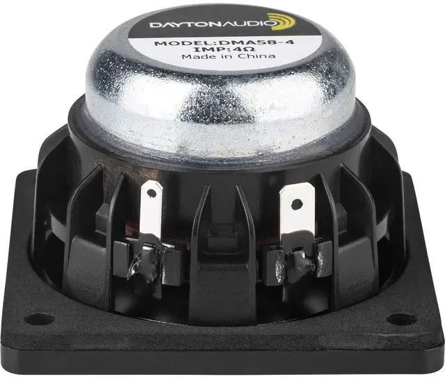 Dayton Audio's DMA58-4 2" high performance full-range driver combines a rigid aluminum cone, powerful dual magnet neodymium motor, and a proprietary open frame to create a state of the art speaker that delivers low distortion, natural response, and amazing high frequency capability. Make Dayton Audio's DMA series drivers and passive radiators the first choice for your next smart speaker, portable Bluetooth speaker, or even high output line array design.