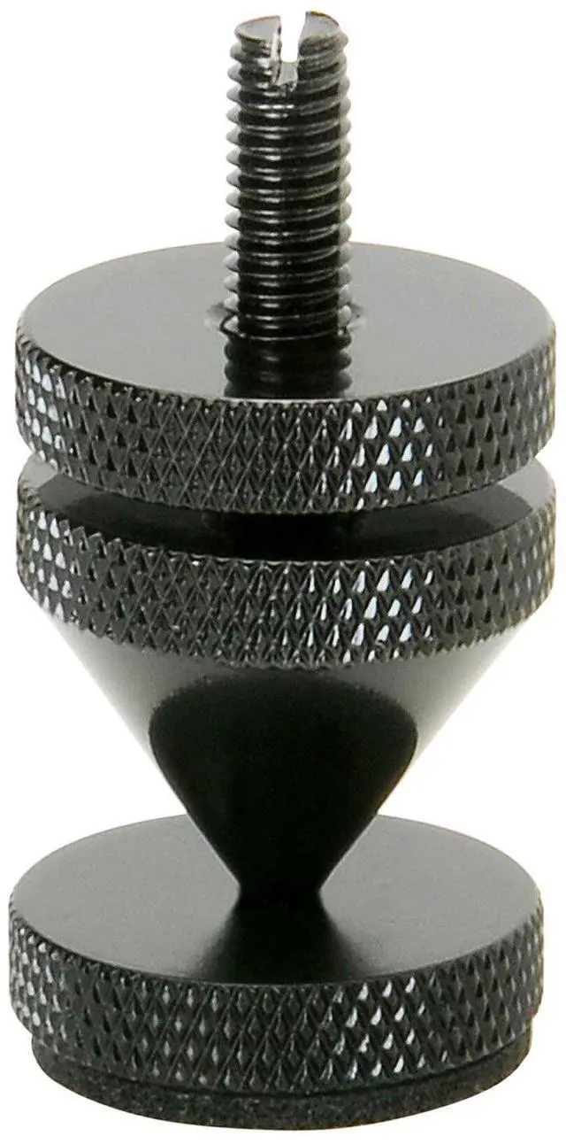 Quick OverviewRigidly coupling a loudspeaker enclosure to a floor by means of a "spiking" system dramatically improves clarity, stereo imaging, and bass response. Product Highlights Dramatically improves clarity, stereo imaging, and bass response Great results when used with subwoofer systems Solid brass construction with attractive plated finish Two-piece tip design for level adjustment Barbed inserts can be mounted from inside or outside the cabinet Product Manuals / Spec Sheets / Downloads Dayton Audio DSS6 Detailed DrawingsDayton Audio Speaker Spike Installation InstructionsBuying Options Buy NowBuy Internationally Product Description Rigidly coupling a loudspeaker enclosure to a floor by means of a "spiking" system dramatically improves clarity, stereo imaging, and bass response. This is especially apparent with subwoofer systems. These attractive spikes are precision machined from solid brass and then plated with a durable finish. Barbed insert nuts and 6 mm threaded studs are included for mounting in cabinets with walls up to 1" thick. Set includes four cone spikes, four floor discs, four barbed insert nuts, and four threaded studs. Insert nut requires a 5/16" hole to be drilled in cabinet prior to installation. *Dimensions: 1" diameter, 1-3/16" high (including disc). Product Details Model Number DSS6-BK Color Black Unit of Measure Set UPC 844632083501 Warranty - Parts 5 Years Warranty - Labor 5 Years Product Shipping Weight (lbs.) 0.95 Product Weight -- Product Height -- Product Width -- Product Length -- Product Depth --