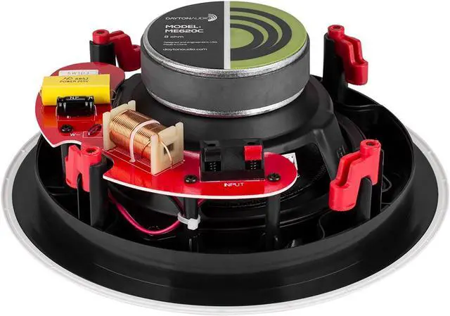 Overview Fill your home with rich, audiophile-quality sound from Dayton Audio's Micro-Edge Series coaxial ceiling speakers, while offering a modern, stealth look for today's contemporary décor. Tough woven Kevlar cone woofers were selected for their inherent transient response quickness and ability to convey a warm response in the critical midrange, while delivering a bass punch that is missing from most ceiling speakers. 1' silk dome tweeters provide pristine clarity for the top end of the frequency response spectrum. Additionally, ME620C ceiling speakers may be used as rear and/or side channel speakers in surround sound applications.